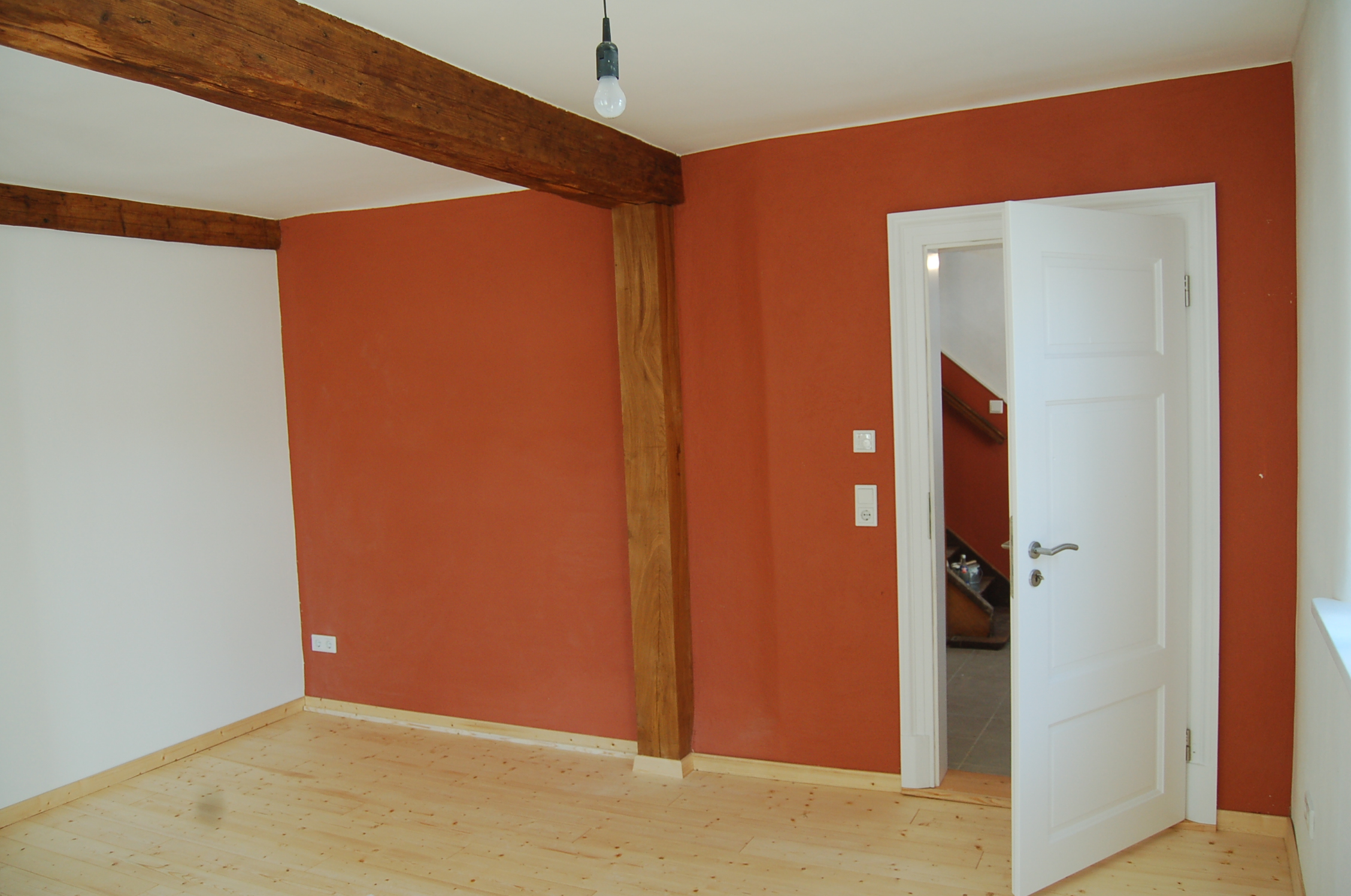 TEX-BIS Lehmfarbe lässt sich sehr einfach verarbeiten. Sie kann sowohl mit der Rolle, mit einer Lasurbürste oder auch einer Spritzpistole aufgetragen werden. Lehmfarben haften auf allen saugfähigen, mineralischen Untergründen sowie auf Naturholzflächen und Rauhfasertapeten. Wichtig ist, dass die Untergründe trocken, fest und sauber sind. Die Fugen von Trockenbau-wänden müssen vorher gut verspachtelt werden. Bei stark saugenden Untergründen ist eine Grundierung notwendig.