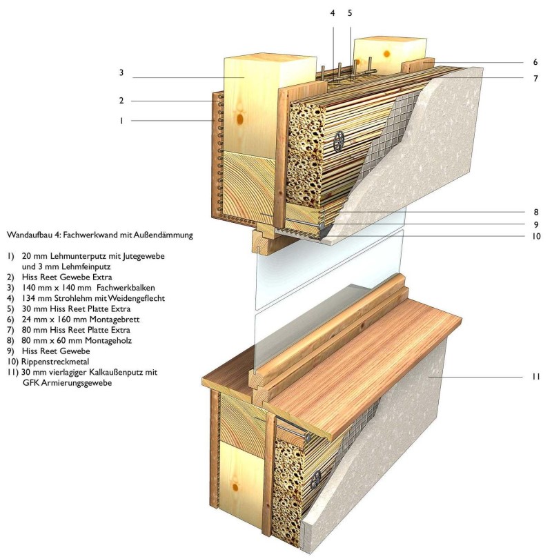 Fachwerkaußenwand mit Innendämmung eingepresst in Lehm