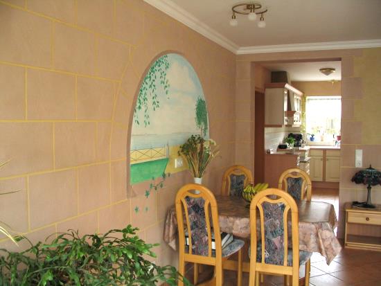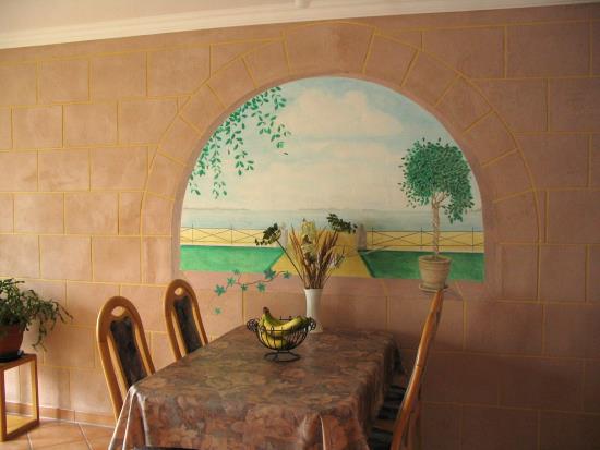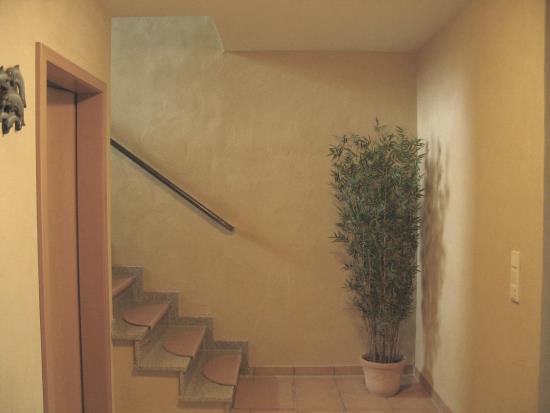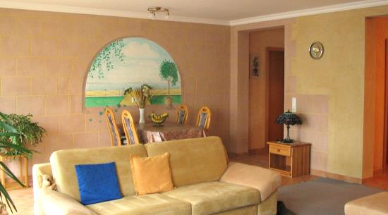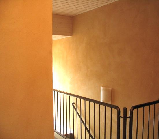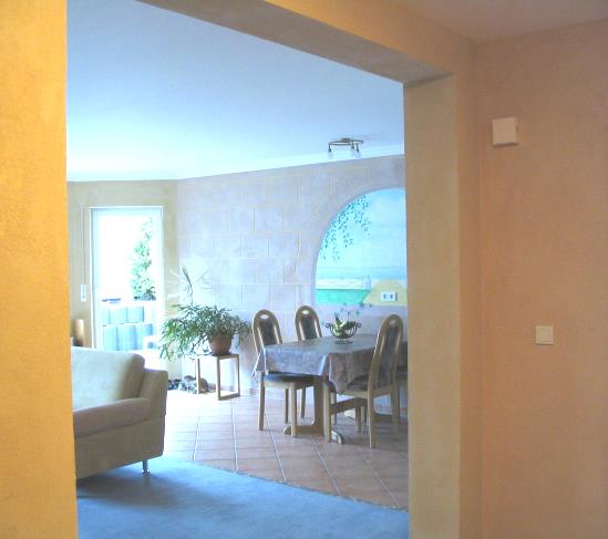 ...und so siehts aus, wenn man einen kreativen Malermeister die TEX-BIS Lehmedelputze Sonnengelb, Apricot und Rosa-Klassik in die Hand gibt...